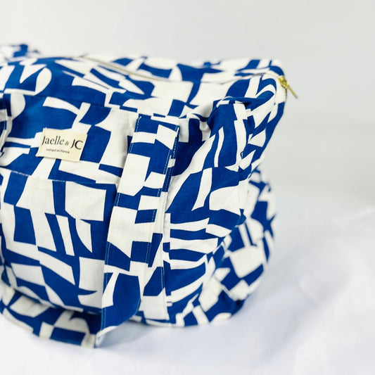Cabas 100% coton - moutarde imprimé fleurs blanches